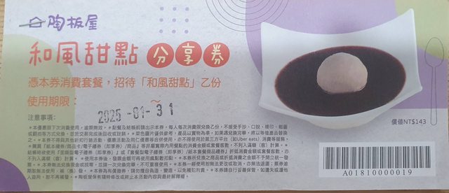 1.陶板屋甜點分享券×2,期限到2025.01.31