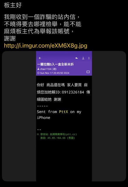 → Arthur818: 詐騙帳號+1 請留意 11/19 18:08
