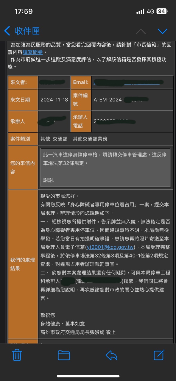 → haohaoYA: 只是是送市長信箱不是警察局的檢舉系統 11/24 12:43