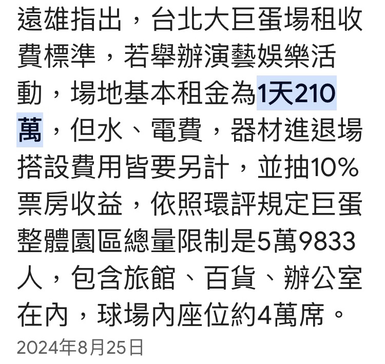 → hantulee: 台北大巨蛋一天的場地租金可能無法應付上面說的電費一 12/02 21:51