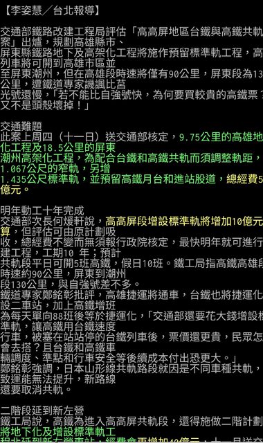 → sea0420: 鳳山要發大財,所以必須要有高鐵、順便來個大巨蛋,然後 12/03 15:18