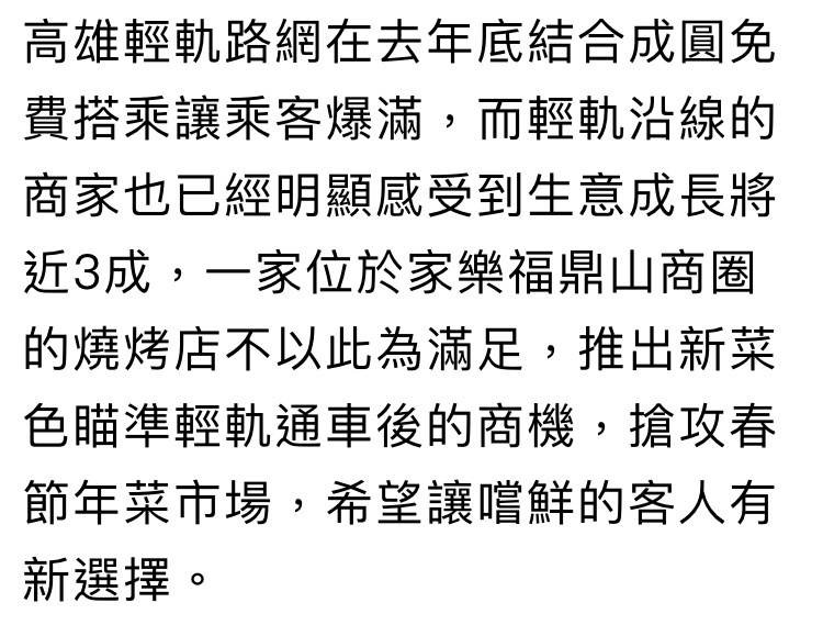 → newlie: 說輕軌帶動觀光更是屁話 輕軌沿線的店家那一間生意變好的? 06/30 11:05