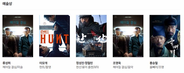 藝術賞:以攝影、美術、音樂、音效、服裝、化妝、視覺效果、特殊效果等技術相關工