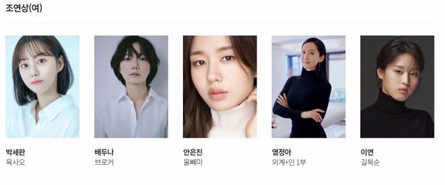 助演賞(男、女)/新人演員賞(男、女)/TV綜藝賞(男、女)/劇本賞/藝術賞