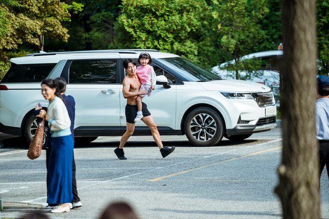 到底有誰會裸成那樣抱女兒在社區狂奔~?哈哈哈