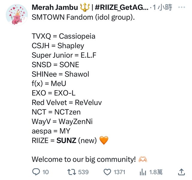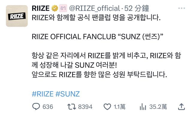 標題[閒聊] RIIZE官方粉絲名 SUNZ