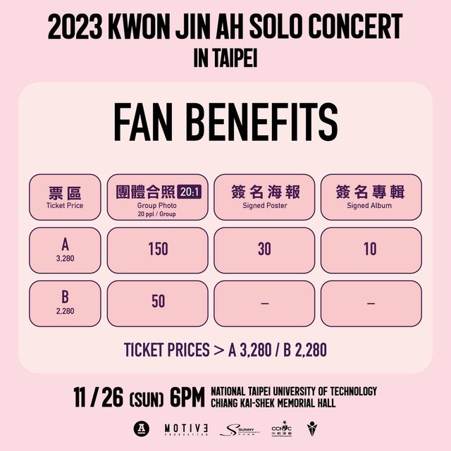 終於可以把2023 KWON JIN-AH SOLO CONCERT IN TAIPEI的相關資訊分享給各位粉絲了!!