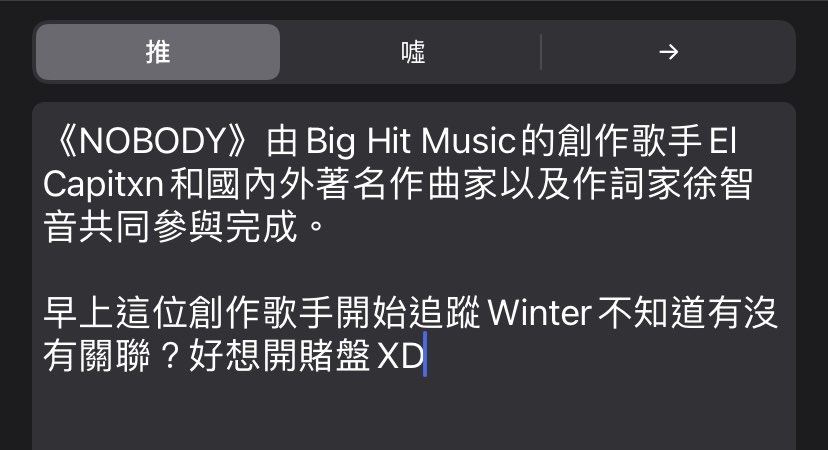 abellea85209: aespa應該機率極高是冬天 1.161.80.219 11/06 14:15