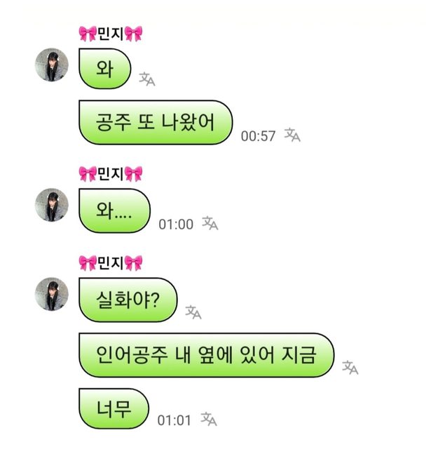 還有Minji看播出的反應 留言: 1.真正的公主!! 2.畫面太棒了!就像電影一樣! 3.看起來就像一個真正的精靈 4.我看了現場直播,真的太美了,我真的被迷住了,她唱得很好,面部表情就像真正的美人 魚在唱歌。 5.現實生活中的小美人魚 6.真的很像美人魚,非常漂亮 7.看完之後……我真的很感動,不只是她的臉,她真的很會唱歌,會做表情。 8.丹妮的美麗令人瘋狂 9.這不可能,小美人魚是真實存在的。 10.哇,如果我真的看到它,我感覺我會哭,因為我太著魔了....她真的是公主 -- 為了實現夢想 需要強烈的意志 伴隨努力的練習 只喜歡唱歌是不能站上舞台的 BoA -- ※ 發信站: 批踢踢實業坊(www.ptt-web.org.tw), 來自: 42.75.118.114 (臺灣) ※ 文章網址: https://www.ptt-web.org.tw/KoreaStar/M.1699269148.A.185