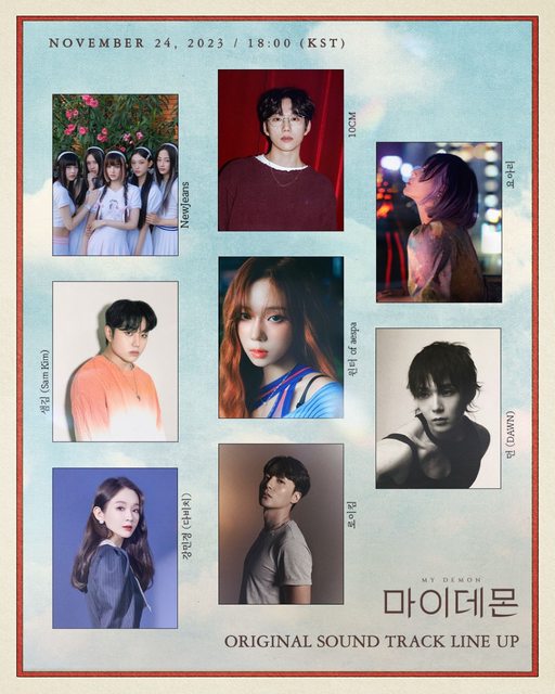 《我的惡魔》方面13日表示,OST將由從New Jeans開始、10CM、姜珉炅(Davichi)、Win ter(aespa)、Roy Kim、Sam Kim、DAWN、YOARI 等人聯手打造! 由 NewJeans 所演唱的《與惡魔有約》 OST Part.1〈我們的夜晚比你的白天更美〉將於1 1月24日(週五)下午6點(KST)正式發售 《我的惡魔》講述了惡魔企業女繼承人都道熙(金裕貞飾)和暫時失去力量的惡魔鄭具元 (宋江飾)之間契約婚姻的故事。 同時,《我的惡魔》是接檔《七人的逃脫》。將於24日晚上10點首播。 <照片由SBS提供> Dispatch新聞來源:https://shorturl.at/nNZ37 -- ※ 發信站: 批踢踢實業坊(www.ptt-web.org.tw), 來自: 122.121.199.251 (臺灣) ※ 文章網址: https://www.ptt-web.org.tw/KoreaStar/M.1699858540.A.189