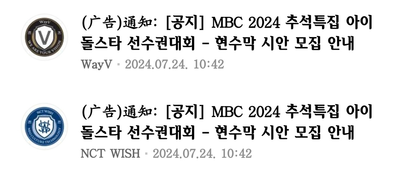 2024 MBC偶運會出席名單 預計2024年9月中秋連假播出 https://m.imbc.com/program/1006490100000100000 MC: 全炫茂 張民好 永卓 吳海嫄 姜丹尼爾 李燦元 鄭東元 場內MC: DinDin 蒔恩 出席名單:*參照各團官推發文* OH MY GIRL (效定、勝熙) THE BOYZ (泳勳 個人出席) NMIXX STAYC Kep1er KISS OF LIFE WayV WOOAH tripleS Weeekly Billlie Rocket Punch The KingDom ARTMS (田姬振 個人出席) LIGHTSUM UNIS Yves (本月少女) NCT WISH VANNER EVNNE cignature JD1 DKB DXMON DRIPPIN ICHILLIN' NOWADAYS Candy Shop WHIB LUN8 82MAJOR ATBO JUSTB FANTASY BOYS BEWAVE BLITZERS The Wind AMPERS&ONE EASTSHINE -- ※ 發信站: 批踢踢實業坊(www.ptt-web.org.tw), 來自: 27.240.169.9 (臺灣) ※ 文章網址: https://www.ptt-web.org.tw/KoreaStar/M.1721715114.A.46B