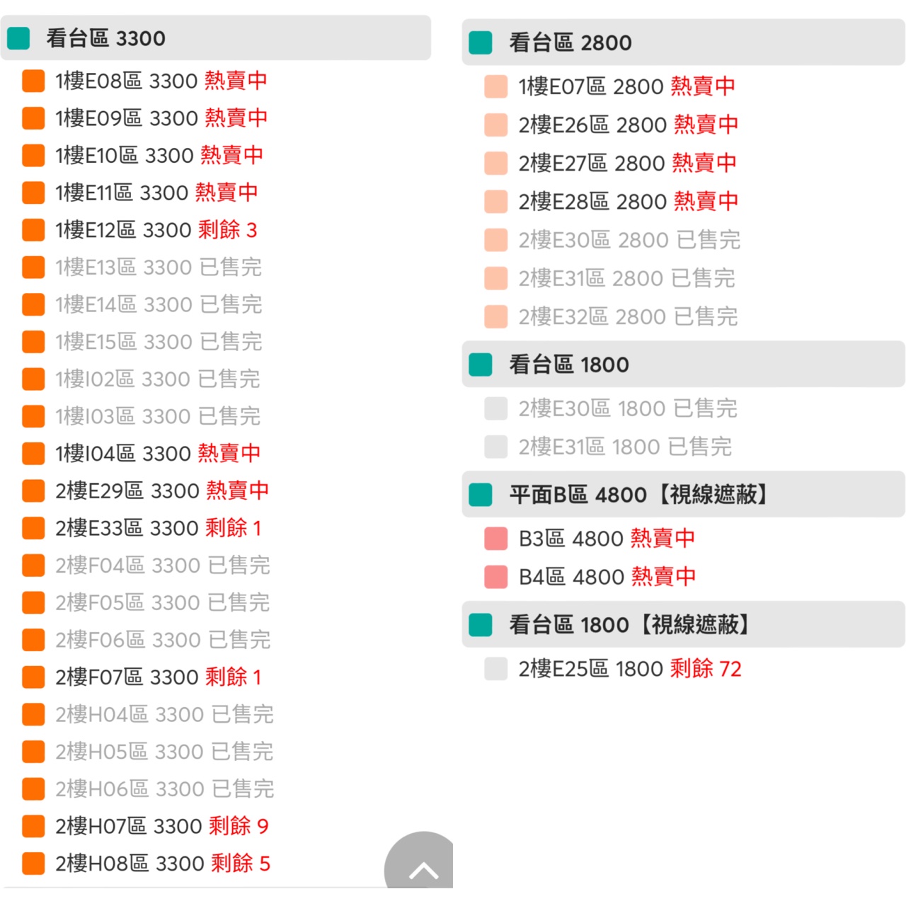 推 misscold: 熱賣中是加開的視線不良區,其他區是零 111.71.52.146 08/14 20:01