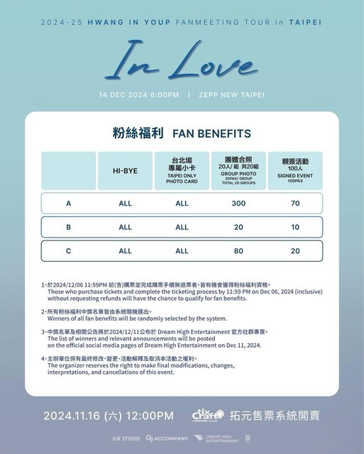 HWANG IN YOUP FANMEETING TOUR [IN LOVE] in TAIPEI 售票資訊公告