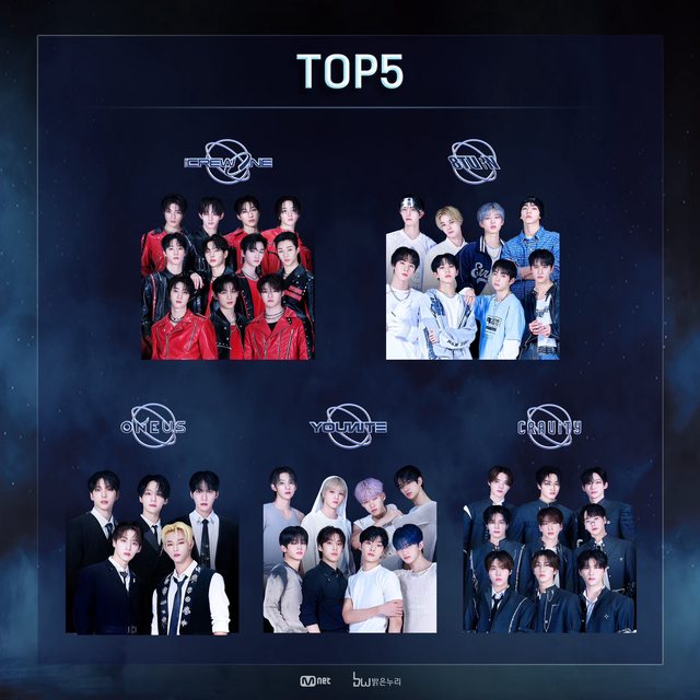 的是ONEUS、第三位是8TURN、第四位是YOUNITE、第五位是The CrewOne。