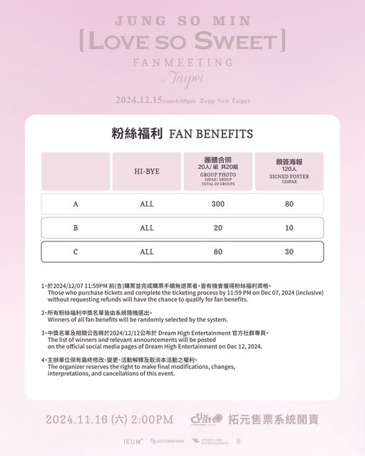 * 中獎名單及相關公告將於2024/12/12公布於主辦單位Dream High Entertainment官方社