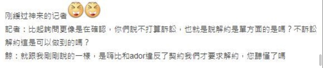→ Myeh1720: 提出要解約的是NJ欸 說ADOR違約 法律上 49.216.167.34 11/29 00:15