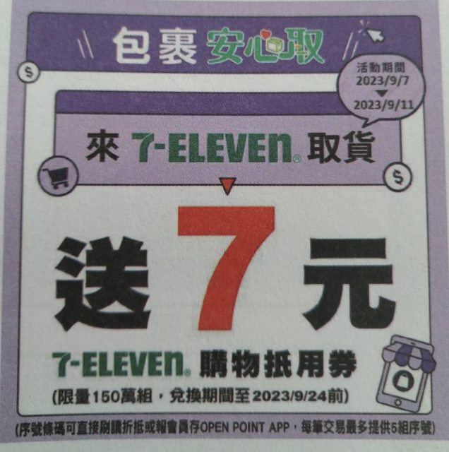 9/7-9/11到7-11取貨每件送7元購物金 每筆上限5組序號,共150萬組 購物金期限到9/24晚上11點59分59秒為止 == 會不會太早PO了? :P 要網購的再等等啊 XD 又要到了「你要收據嗎?」「取貨不用集會員/沒有會員點數」 「(你沒給電話或掃條碼但他們說)已存會員囉~」的時間了 科科 要存會員的請溫柔但堅定且有禮貌的說「購物金請存會員/APP,謝謝」 並報電話或給會員條碼 (結帳時要用兩張以上的可以一起打勾再合併產生新的單一兌換條碼) 或是記得要拿到上面有購物金QR碼的收據後再離開 結帳時可直接請店員掃碼折抵即可 -- ※ 發信站: 批踢踢實業坊(www.ptt-web.org.tw), 來自: 36.226.92.156 (臺灣) ※ 文章網址: https://www.ptt-web.org.tw/Lifeismoney/M.1693116047.A.D7C