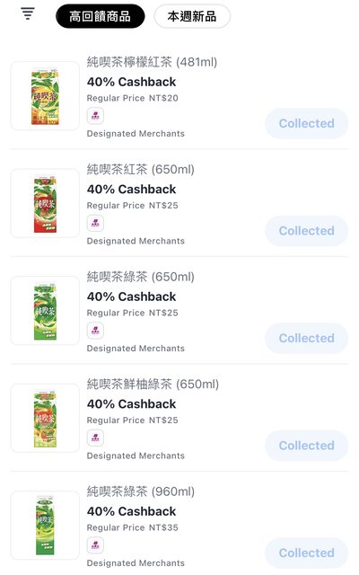 蝦貝本週8/28~9/3 美廉社 純喫茶指定系列40%回饋 每帳號 每種飲料 限回饋一瓶 推文已確認是分眾優惠 沒有無糖綠茶 https://i.imgur.com/VcWzCK2.png