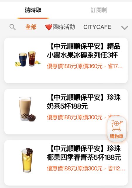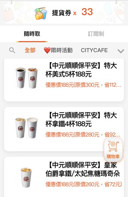 剛剛要兌換飲料隨手看一下~ 咖啡、珍奶、波椰青有組合價,有些品項是特大杯(目前還沒喝過特大杯不知道會不會跟一般手搖一樣大) 期限到9月底,不過也不多杯就是了 分享給大家嘿~ https://i.imgur.com/3PTA297.jpg