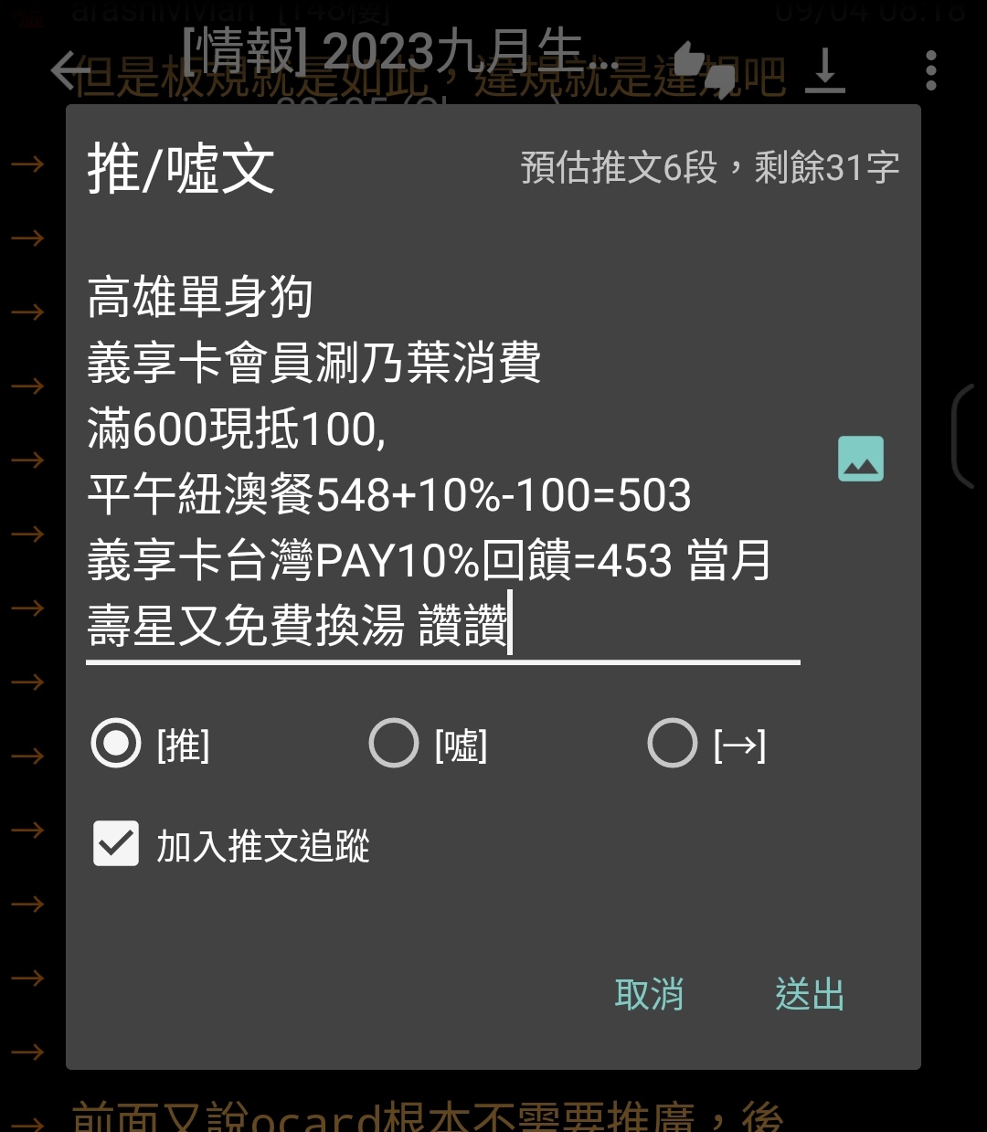 → keefei: 發生日優惠整理分享文就幫推一個,昨天下61.224.154.217 09/03 22:24