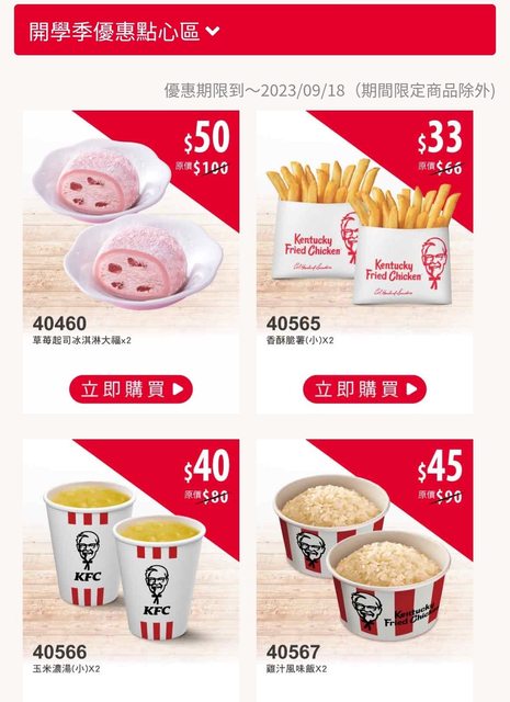 肯德基的開學季優惠點心一送一延長到9/18 有想買的 可以去買 總共七款 https://i.imgur.com/SYwMMGA.jpg