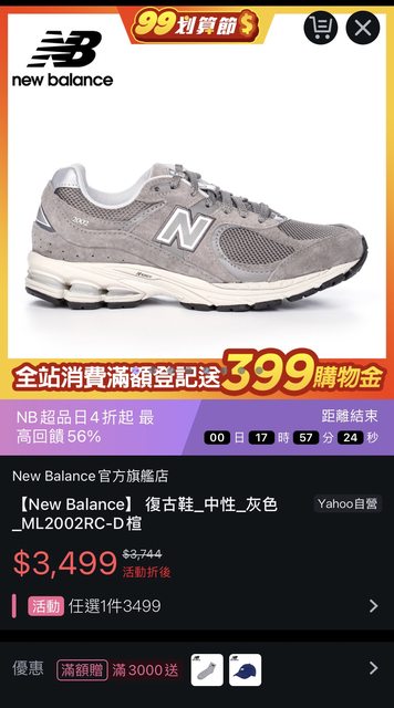 活動折後$3499再送一雙NB灰色短襪 https://bit.ly/45TrPAq 結帳金額超過$3500是送NB藍色棒球帽 https://bit.ly/3r02pBn 如果想要這個贈品就不要搭配$3499活動 只要選用折180元的折價券 結帳金額就會是$3564送一頂NB棒球帽 另外看到元祖灰的XC72預購價$2449也便宜很多 有興趣可以一起參考 https://bit.ly/3LbaY31 登記可以再送399購物金 https://bit.ly/3r02DZf NB超品日活動 https://bit.ly/3R8G92J ---- Sent from BePTT on my iPhone XR -- ※ 發信站: 批踢踢實業坊(www.ptt-web.org.tw), 來自: 180.218.126.131 (臺灣) ※ 文章網址: https://www.ptt-web.org.tw/Lifeismoney/M.1693913901.A.C32