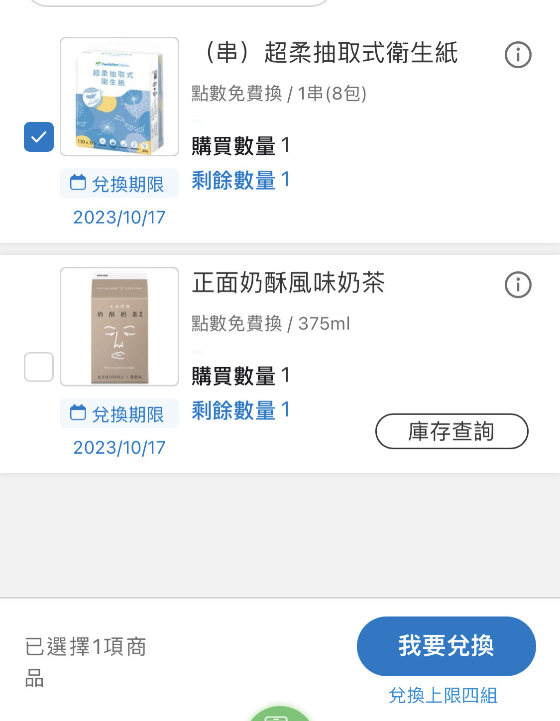 m13579: 衛生紙沒興趣 兩款飲料都換到收工 1.200.2.70 09/06 10:03
