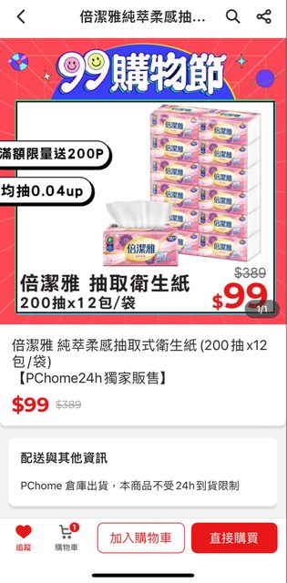 只是限購1還要找別的東西湊單中~ 99購物節有個5折下殺可以找一下什麼還有貨可以湊湊看 -- ※ 發信站: 批踢踢實業坊(www.ptt-web.org.tw), 來自: 1.170.39.96 (臺灣) ※ 文章網址: https://www.ptt-web.org.tw/Lifeismoney/M.1694222133.A.463