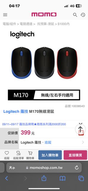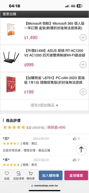 MOMO 優惠加購PC-cillin 2023 雲端版 1年1台 NT$199 購買滑鼠(也可以選其他滑鼠) https://i.imgur.com/kNlm4mk.jpg