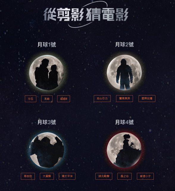 catchplay+中秋節活動遊戲 https://reurl.cc/o5e7Z3 猜對剪影可獲得單片租借代碼 https://i.imgur.com/8yDSRks.jpg