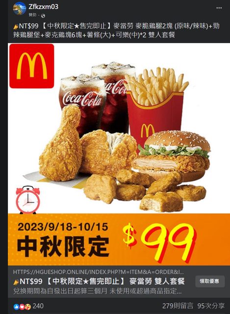 剛剛在FB 看見詐騙廣告 詐騙集團?? 中秋節限定 看到這麼便宜 我懷疑是詐騙 點進去看 應該是詐騙? 請多注意! https://i.imgur.com/JgVrv8E.png