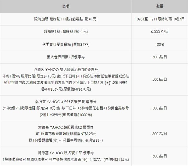 獎項不是全部都送超贈點 也有優惠券