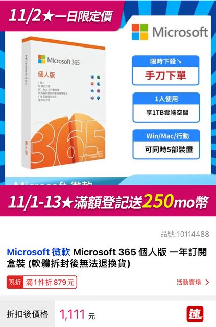 這價格應該跟淘寶買差不多了,如果還沒買的可以考慮一下,11/2一日限定不確定後續還會 不會有。 https://i.imgur.com/Dhf6TyY.jpg