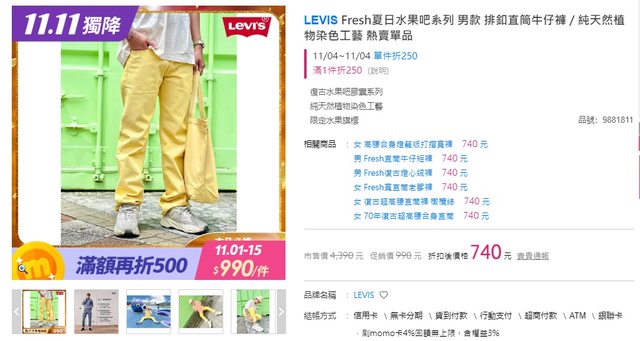 標題[情報] MOMO LEVIS 活動區 1件折250