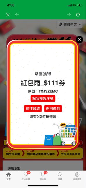 行動購上出現了一個抽紅包活動! 我玩了好多天終於全部都轉到了 分享給朋友的時候發現券號都是相同的 大家可以分享給大家! https://i.imgur.com/j9sacfj.jpg