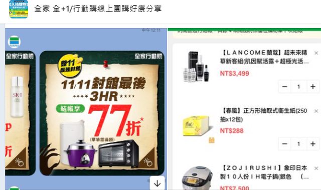 全家行動購最後三小時有封館77折 也可搭配紅包拿到的卷使用 https://i.imgur.com/Bb3lEsR.png