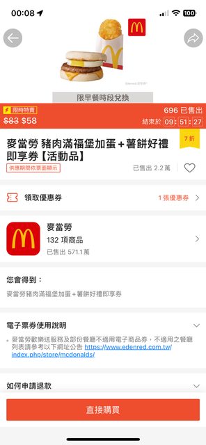 → kkkk1234: 根據麥當勞客服說法 兌換購買的即享券= 36.226.148.94 12/01 02:13