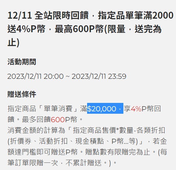 → es612: 其實時間沒導購加碼的時候P幣回饋就不限次 1.171.198.193 12/11 20:52