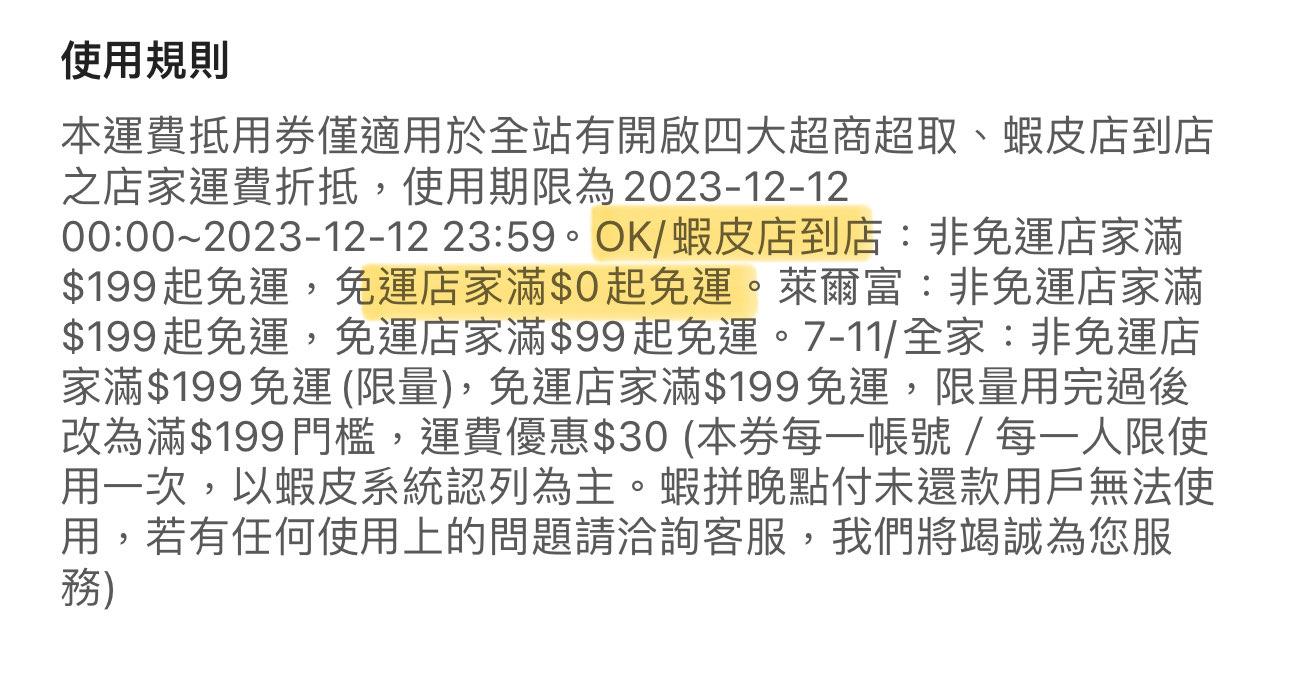 推 Dosk: 一堆人是沒有點進去看過免運券的使用說明? 1.171.200.156 12/12 14:21
