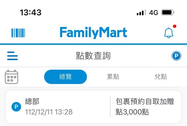 標題[情報] Re:全家11月包裹預約自取送3000點 數(