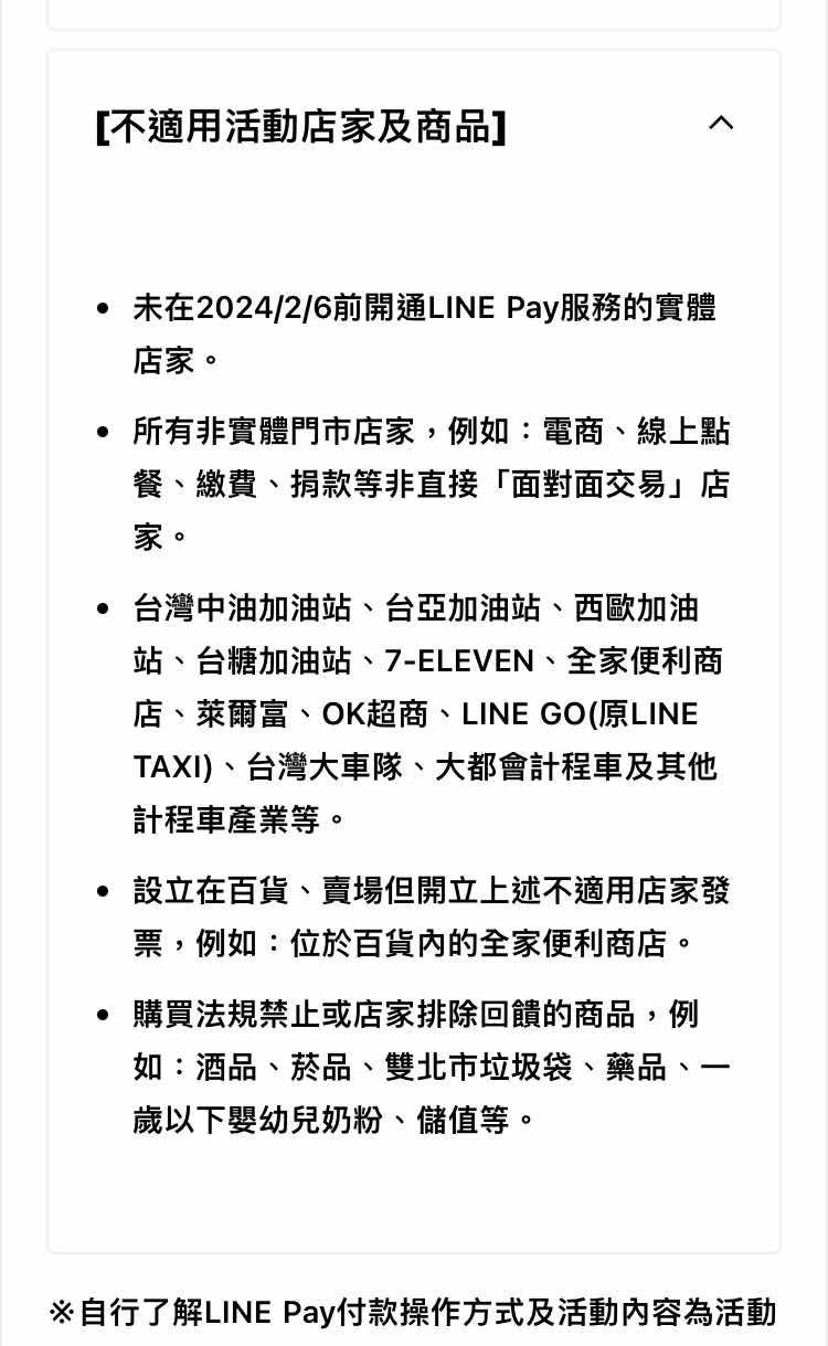 還有,有些店家排除,例如加油站、便利商店等等