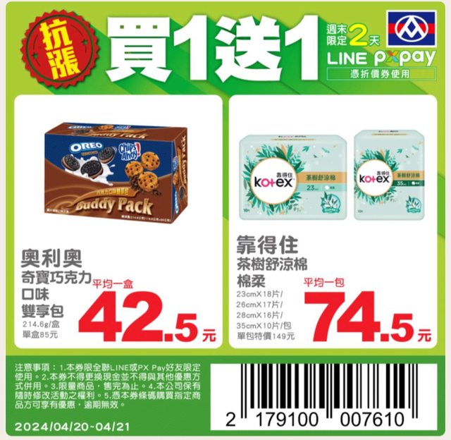 推 KatzeLuna: 衛生棉便宜耶,但只特價兩天也太短180.217.19.38 04/21 12:09