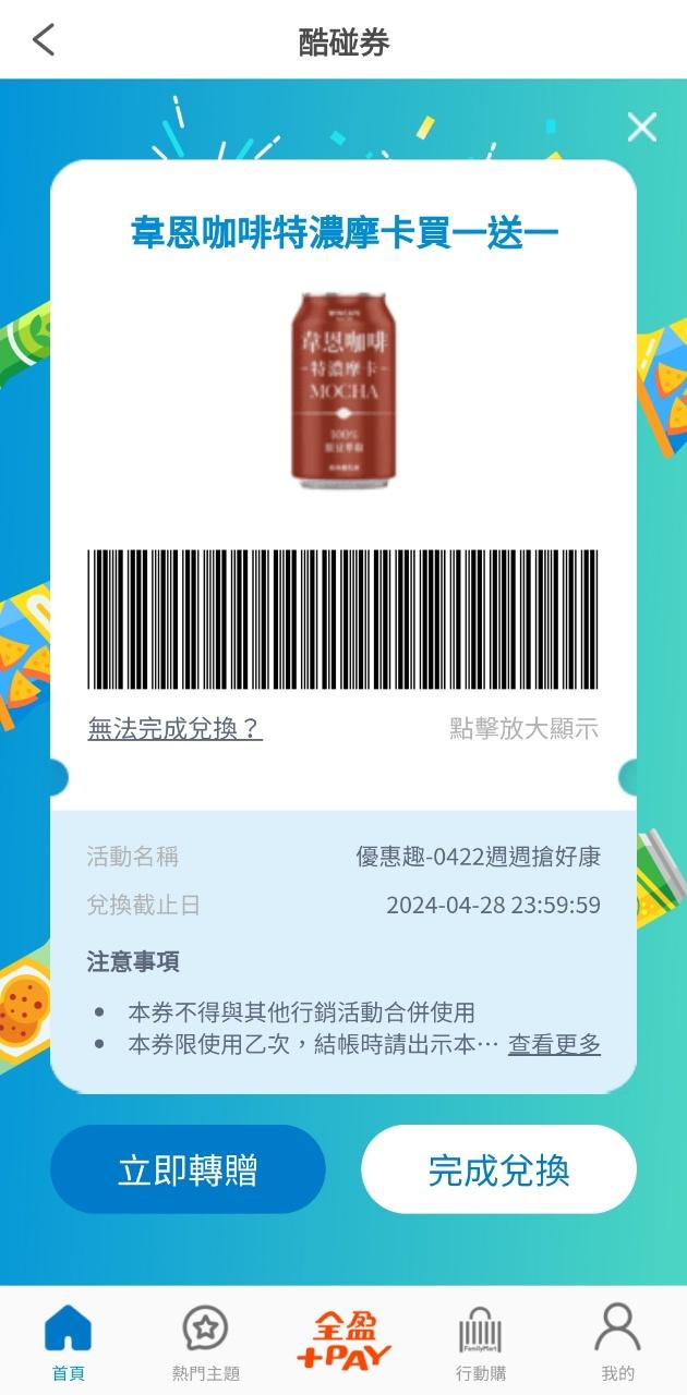 → fishone: 在family mart app 裡面哦101.136.249.2 04/22 13:55