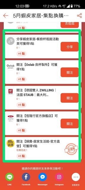 只要關注指定賣場就會有1點 拿1點可加價換商品