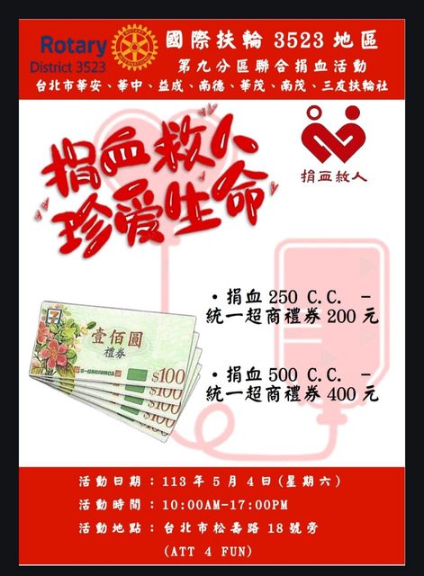 國際扶輪 3523 地區 第九分區聯合捐血活動