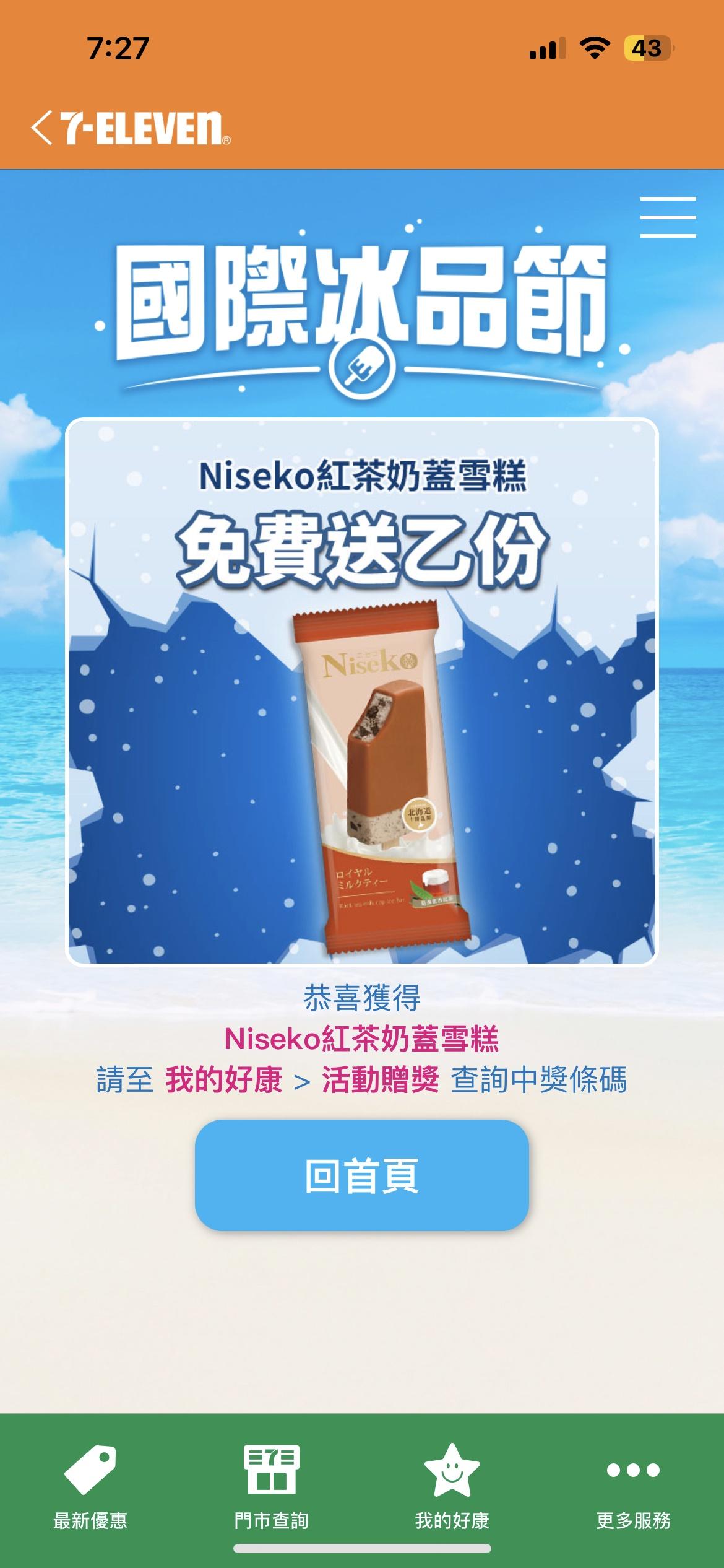 國際冰品節活動方式 活動時間內, 1.加入7-ELEVEN LINE官方帳號後,由7-ELEVEN LINE官方帳號點選下方活動選 單,即可進入國際冰品節 抽抽樂活動。 每人(每個LINE帳號)每天限參加2次。 參加「國際冰品節」活動獲得的折扣條碼,可至7-ELEVEN LINE 官方帳號,進入國際冰品 節活動的”優惠券”列表頁查詢,憑條碼至門市使用折扣。 每條碼限使用一次(折價一組),使用過後條碼立即失效。 7-ELEVEN LINE國際冰品節折扣條碼經刷讀後,商品恕無法退換貨。 2.7-ELEVEN APP 遊樂場每天也可參加2次 https://i.imgur.com/sL7ntP8.jpeg