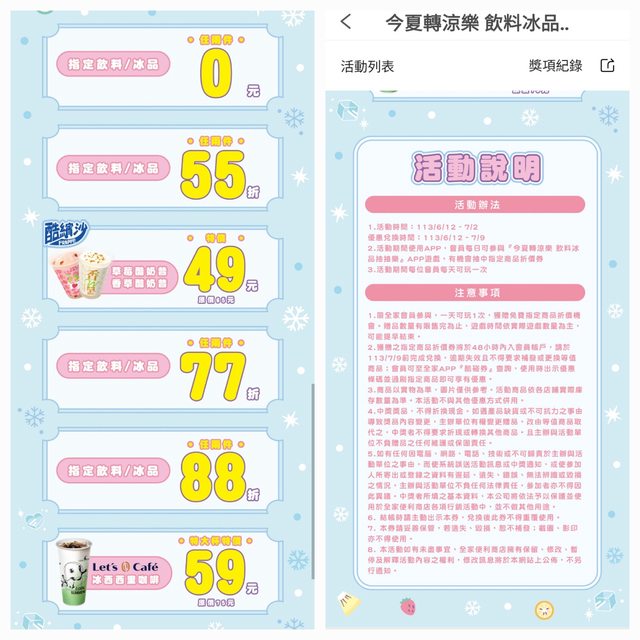 推 mhdark9317: 請問55折指定飲料有列表嗎 還是就圖上61.219.69.199 06/12 10:41