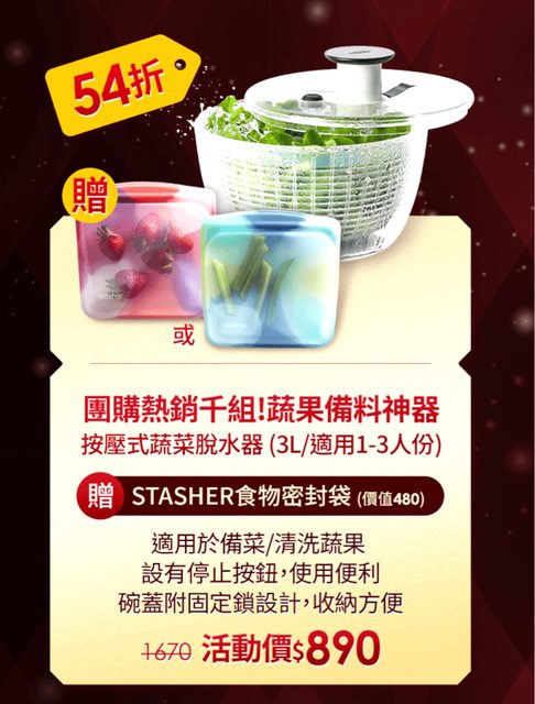 OXO 按壓式蔬菜脫水器 送STASHER食物密封袋 $890