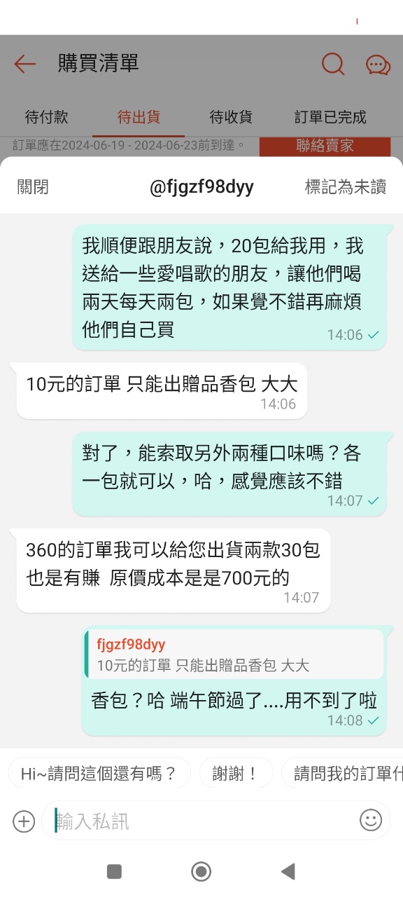 推 akane1234: 一直在盧要買家取消訂單.... 36.229.80.87 06/16 12:15