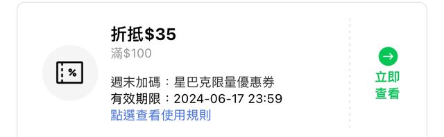 ※ 引述《apple2009 (apple)》之銘言: : 快搶 : line禮物星巴克滿$100折$35 : 面額110飲料券也可折抵購買 今天又有line禮物滿100折35的回饋喔 https://i.imgur.com/mm99KuV.jpeg